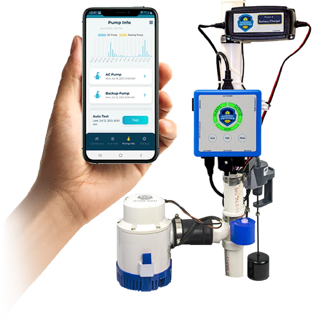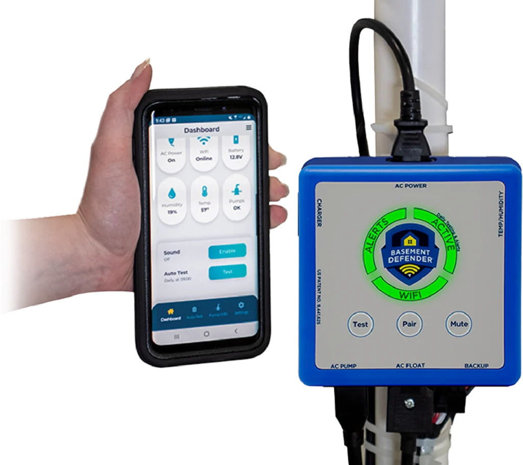 Monitor your sump pump from anywhere with the Basement Defender app, which provides hourly updates, daily testing, and alerts during severe weather.